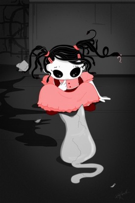 So…does that mean they can be scary? Katy Towell seems to believe that the creepy side of youth exists, as she's become an internet celebrity with her rather dark cartoons about little girls. Her gothic work seems like something from a Tim Burton film with the creepiness of Marilyn Manson, not to mention the fact that most of her work hasn't really done a quote "Happy Ending".