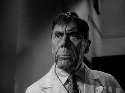 After he leaves, Deemer confronts her as she's about to go upstairs. Upset, he scolds her for letting him see the lab. Shocked alone at the attack, she's even more surprised at how his face looks. As he leaves her, he pulls out a mirror in his lab and looks at himself, then relies that he's been injected.
