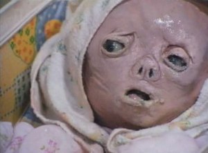 All praise aside, the film is far from perfect and if you listen to the DVD commentary (which is excellent, BTW), Buddy G would be the first to admit that. There are two versions of the film available on the latest DVD, one being the uncut version, under its original title, AMERICAN NIGHTMARES and the theatrical Troma version. I actually prefer the theatrical version. It’s tighter and the addition of stock footage in the ‘Nam flashback scenes are more affective than the version without. Some of the scenes in the uncut version just go on for far too long. Then you have the whole dilemma with the baby, which is a puppet. For one, it does not look real and the sound it makes could peel wallpaper. From all that I’ve read about COMBAT SHOCK, the baby seems to be most people’s main gripe about the film. I feel just the opposite—I fucking love the baby!!