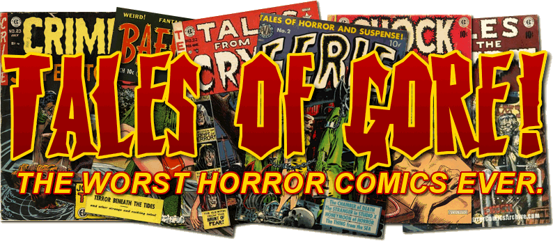 Eerie Publications horror comics mixed reprints of cheap imitators of E.C. Comics from the 1950s with new stories designed to deliver as much gore and sleaze as possible. The reprints were often touched up to either accentuate cleavage or amp up the violence. Very few of the stories made much sense or were anything more than an excuse to depict beheadings, dismemberments, disembowelments, eye gouging, throat slashing, flesh melting, or torture.