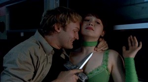 The film opens with a few great, very creepy sequences. The initial dream-sequence is a bit of a cop-out, but sets the mood well enough. In the second sequence, a lone Japanese girl waits for a train to come, as a stranger, turned away from her, creeps closer and closer through a series of creative cuts. In retrospect, I don't know what the hell the point of this sequence is, but it is very well put together, extremely creepy, and has a predictably bloody end.