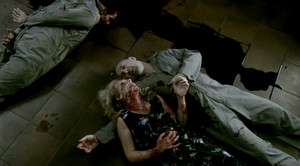 Now that you've gotten a taste of ghosts and zombies, its time for the film to take a very unexpected turn. All the of the characters and victims are introduced on the train, one vignette at a time, when a series of beepers go off simultaneously. Suddenly, a religious cult, many members of whom are on the train, get up and start massacring passengers.