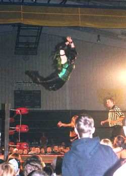 Drew: You also have a unique attack, the Green mist (most well known used by ECW/WWE star Tajiri), where you spit a substance (obviously green) into someone's eyes, how did you come across this and decide to use it?