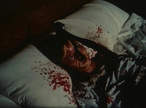 Now, the film is, as you would expect, badly scripted. The lines are delivered horrendously and the whole thing seems to plod along at a rather predictable rate, that is until the stunning closing scenes. When Terry makes her bloody discovery in the outhouse, the camera work is truly brilliant, very stylized and perfect for the disturbing subject matter. The gore is also well done, considering it was obviously a low budget feature and just enough is shown to create the desired effect. As for the end scene where a crazed Marion is stabbing Terry over and over, I for once could see why this film was banned. It was pretty grim and certainly unsettling to watch.