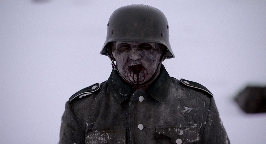 As the group parties on into the night awaiting one of the crew members girlfriends to arrive (she is killed in the beginning and just so happens to own the cabin), they are visited by an old man needing a cup of coffee. When they allow the man inside, he tells the group of the Nazi soldiers and how they were led by an evil colonel who retreated he and his men into the mountain they are surrounded by, never to be heard from again. Ah, the plot thickens. He then speaks of the soldiers knowing that they were going to lose the war so in turn, began stealing and pillaging the area folks of their gold, silver, and other valuables. After the creep out session with Old Man Withers, the group ignores the possible threat and go-on with their weekend of partying as the old man leaves to his tent; even one of the med students has an odd fear of blood which totally gets erased when the killing begins.