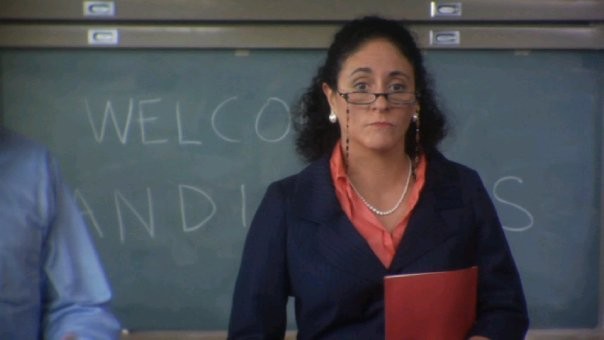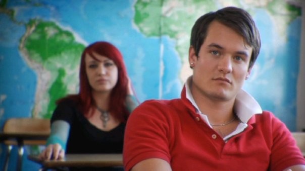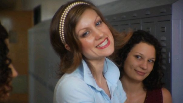 The picture's greatest strength is probably the assortment of colorful, offbeat characters that it boasts (keep an eye out for John Waters/Don Dohler veteran George Stover!), including a sinister creepazoid janitor ("I wanna put cyanide... in their cheesesteaks."), a melodramatic alcoholic homicide detective who sips his booze from a Big Gulp, a bald-headed school cop determined to get to the bottom of the killings, a guitar-strumming B.B. King clone principal, a grim n' gothy (but eminently porkable) school newpaper reporter (played by Ruby LaRocca, who you might recognize from SHADOW: DEAD RIOT, FLESH FOR THE BEAST, or BATBABE: THE DARK NIGHTIE, amongst other titles), a jolly high school sports mascot and Hawaiian shirt enthusiast (played by modern day b-movie mainstay Shawn C. Phillips, of Don & Murph, Coolduder, and ASSAULT OF THE SASQUATCH fame), a catty cunt named Chelsea who seems to spend all her time in the bathroom and who would do anything (anything?) to become student council president, and, last but not least, our hero Barry, a slightly rebellious slacker kid whose kooky, class clown self only joins the race in hopes that it might give him a shot at knockin' boots with the cute, civic duty-minded new girl Joanna (who just so happens to have an obligatory "suspicious past"). My favorite character, though, is the lovely Miss Heath. Sure this bubble-headed/bubble-chested educational tutor/Mary Kay Letourneau wanna-be (played by professional lust object/model Jesse Layne) only has about five minutes total of screentime, but neither me nor my carpal tunnel-ravaged wrist will ever forget the very special moment we shared with this blisteringly babelicious bimbo and her perfect, pendulous, melon-heavy hooters. Seriously, that is one mouth-watering rack! Those suckpuppies will put your eye out, son! Hoo-doggy, I'm getting whack-attack flashbacks just writin' these words.