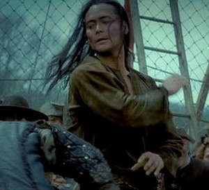 I never imagined that a foreign period piece that wasn't Asian could mix in martial arts and fit perfectly. Even more so, I never thought a Native American could be such an ass kicker in a fight. Even though Fransac and other characters have well trained fighting abilities, Mani's are the best. Here is the example: after fighting and defeating just a few men, others feel like testing him and step up, even some women. The fight isn't to the death or anything; it's actually entertaining to just about everyone around. It also will reflect on events that were to come later in the film. Really, there were a lot of other fights to choose, but this one takes it for me.