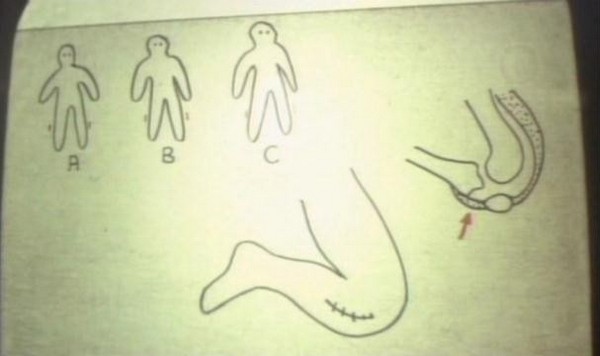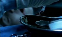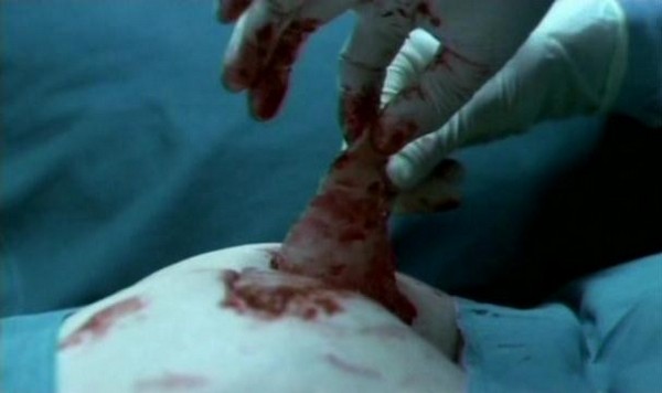 So you don't see the whole surgery, obviously, but they show you enough to make you feel slightly uncomfortable. There is a shot of Dr. Heiter pullig out teeth, cutting tendons, cutting the skin around the ass, sewing skin to a face. All this is spliced together with shots of Heiter taking breaks to relax, and full on shot of the progress of his creation.