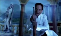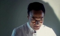 The doctor busts in with the scalpel in his hands, and Katsuro drops the lamp and opts to try and defend himself with a sliver of glass. Wait, what? You're telling me that you're giving up the big bludgeoning object for a tiny sharp object? What the hell is wrong with the people in this movie? That's like being up against an elephant and trading in your rifle for a BB Gun. Then, right out of the blue, Katsuo says: