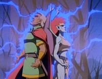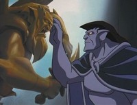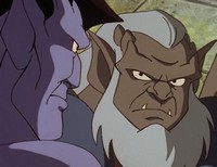 Amongst it, Magus thinks the Gargoyles are to blame and even after they've freed him, cast a spell to turn them into stone permanently. Goliath meanwhile saves the Princess but fails to gain vengeance as the Captain and the Commander of the army fight amongst each other and both fall to there deaths. Upon finding his kin turned to stone and that Magus can't undo the spell unless there castle is raised above the clouds, Goliath has the spell cast on him. The Princess and her people then return the Gargoyles to the castle and leave with the eggs, promising to take care of them.