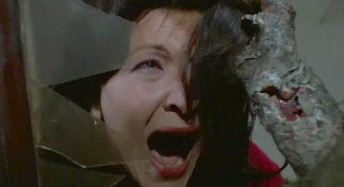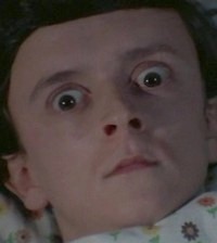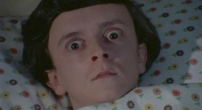 A special effect in this film that gets an honourable mention is, of course, the infamous nipple biting scene. It's your standard shot of showing a character ripping apart flesh off a human body, only this time it is of course coming off a woman's breast. The effect itself is unremarkable, what makes it creepy is two fold: Firstly, that the character Michael is Evelyn's just-hitting-puberty 13 year old son, and second the fact that Michael is played by a 26 year old dwarf.