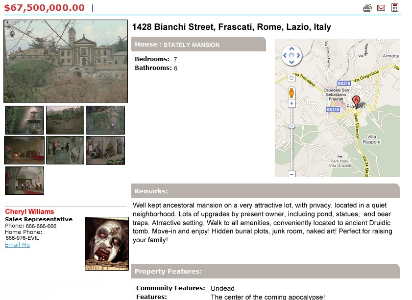 First of all, George owns the property which just also happens to be the site of an ancient crypt that has secrets to the undead? I understand that it's a great big mansion out in the country, but George didn't you notice the pit of the dead in your back yard? We're not just talking about the crypt either, they're buried under the ground and even in this guy's flower beds! I can just imagine what the real estate advertisement for this place looked like: