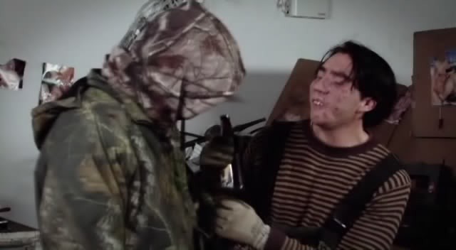 Hanger's daddy is a prostitute loving truck driver, who loved his mommy, but not enough to actually save her from the hateful stereotype Leroy. ("Better give me my money, bitch!" Brilliant shit.) 18 years later, on his birthday, Daddy sets Hanger up with a job at a recycling center and an apartment with a "slant-eyed retard" named Russell. Oh, and he enlists Hanger in a plot to get revenge on Leroy for killing mommy. And being a great dad, he sets Hanger up with prostitute who apparently works in the junk yard. Sadly, Hanger freaks out and tears the nice lady apart.