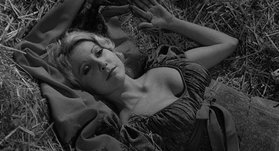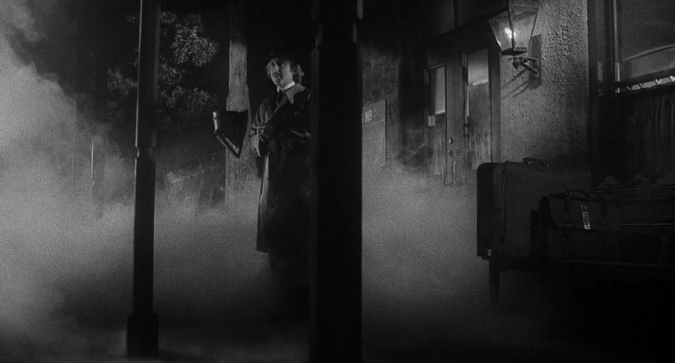 The film begins with the title and eventual credits. As this happens, we slowly move into the castle in the foreground as it rains. While the credit's near the end, the scene takes us to the front gate of the castle.