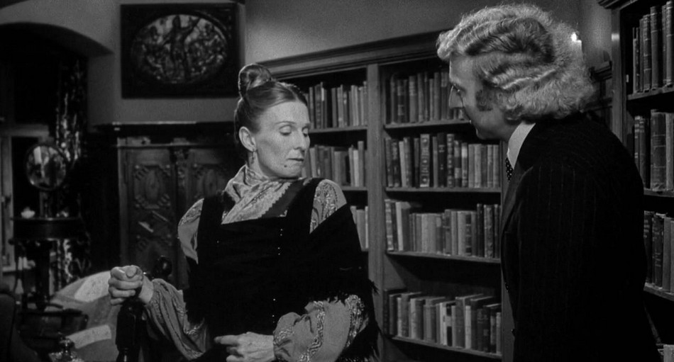 In his personal room, Frederic questions Frau Blücher about his grandfather's books as the library there just has standard medical texts. Frau Blücher claims no knowledge and leaves after offering him a number of possible drinks. He notices though she admires his grandfather's painting rather passionately.