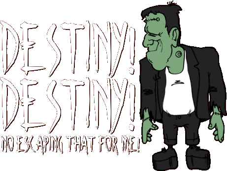 Locked up in the dungeon at the castle, Frederic commands Frau Blücher, Eyegore and Inga to not interfere as he plans to go in and make peace with it. Once inside though, the creature rises angrily and he bangs on the door begging to be let out, but Frau Blücher doesn't allow him. Slowly, he manages to calm the creature by sweet talking it and saying they'll show the scientific world what can be done. When Inga asks if he's alright, Frederic declares himself a Frankenstein.