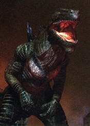 If your looking through Godzilla film descriptions looking for this monster, well don't bother, this monster has never been a movie at all. You heard me. This monster nearly made it into several films over the years, but it never did. And yet this also one of the most well known monsters amongst the die hard fans. Why? Bagan was the final boss for the Super Nintendo game Super Godzilla. In it, Aliens have invaded the earth and Godzilla must fight his way through several enemies. He eventually turns into Super Godzilla, a large more powerful version of him (you can similarities between Super Godzilla and Space Godzilla). After defeating King Ghidorah, the aliens combine Godzilla and King Ghidorah's sells to produce Bagan, the final boss. Like Gabara, this one partly gets it from sympathy. He has a pretty good monster design with a long tail, large sharp shoulders, horns on his head, and a pretty large body frame. I also think he has psychic powers from the game, but don't quote me. Pretty much, give this monster another chance, please!