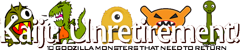 Yeah, this one gets it partly for sympathy. The only film Gabara has appeared in is All Monsters Attack or Godzilla's Revenge, neither title having any real connection with the plot. Gabara not only has the shame of being in one of the stupidest Godzilla films, but he's also has one of the stupidest storylines. Like all monsters in the film, he's nothing but a figment of a boy's imagination, and he in particular is a monster version of the kid's bully who bullies Minia. Honestly besides a lame horse like laugh, he isn't all that bad of a monster, he has a cool power in which everything he touches he launches electricity into it. I say give him a better roar, a bit of a make over, new origins and keep the powers, he'd be more worthwhile.