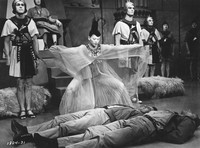 The Civil Rights Movement began a year before The Mole People was released, and was a clear influence on the tone of the film. The albino Sumerians, as pale as human flesh can be, enslave not only the dark-skinned Mole People but atavistic, non-albino members of their own race as well, living a life of leisure while the darker slaves labor to support them. Bentley falls in love with Adal (Cynthia Patrick; listed as "Adad" in the credits), an atavistic slave girl after she is given to him; she is as stunned as the rest of her culture when he refuses her as a slave, and instead treats her as a free woman and as an equal. When he urges compassion and fair treatment for the Mole People as well, it proves too much for the Sumerians to handle, and Elinor sentences him to be sacrificed for his crimes.