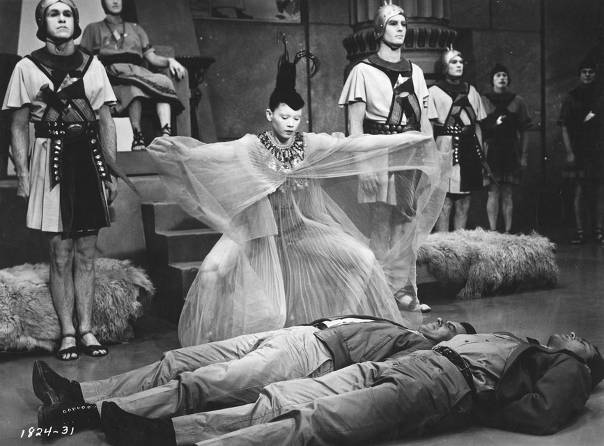 In a somewhat ironic twist of fate, the original script for The Mole People featured Adal escaping to the surface world with Bentley and living happily ever after. Studio executives, uncomfortable with the implied interracial relationship between the WASPy Bentley and the Sumerian Adal, urged that this be changed, and in the final product, Adal is killed by a falling column as an earthquake strikes during their escape.
