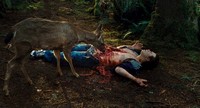 Adam Brody is note perfect as the indie band Low Shoulder's lead singer, Nikolai Wolf. Is it his eyeliner that gives away that he is not what he seems? Heck yeah!! When Jennifer sees them at the Melody Lane club (it's more of a desolate bar in the middle of the woods), her puppy dog eyes seem to fixate on the singer's every move. It's too bad that Jennifer didn't listen to what Needy said about guys like Nikolai. She would have saved herself a lot of trouble. As the band performs its hit "Through the Trees", the rest of the crowd there is oblivious. Needy sees what's happening though. It is eerily reminiscent of a real life event. Hint: there is smoke, fire and a stampede.