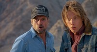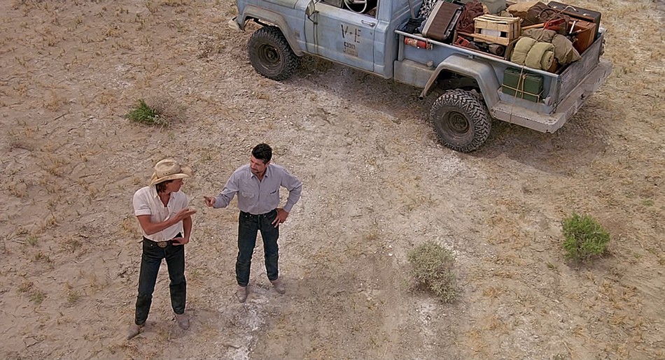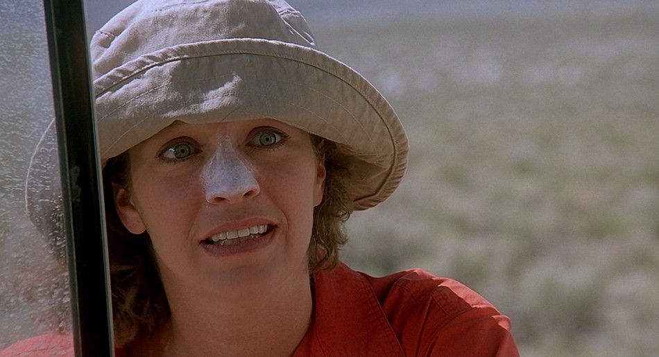 The movie begins with the title shifting to a Nevada valley at a cliff drop off. Valentine McKee (or Val) is taking a leak over the edge. He then goes to the back of the work truck where Earl Basset is still asleep and he awakens with a false stampede. They then decide on who will make breakfast over Rock/Paper/Scissors, Val loosing. They begin working on the fence which is the reason they're out at the cliff (them being handymen for hire). They then discuss how not having a plan is how they're stuck doing lame work. Once done, they drive back through the valley discussing there next job. Along the way, they see the new college girl camping out and visit her, Val hoping she falls under the category of his last lover who was rather blonde and dumb. Instead, Rhonda is more a tomboy. While greeting, she questions them on weird readings she's been getting from her equipment. After they leave, Earl rants about how limited Val's qualities are for a woman.