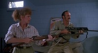 Back in town, they head into Walter Chang's store (and warning the local teen brat Melvin to stay away from the truck). Inside, they meet up with Gun and Military enthusiasts Burt and Heather. The scene then shifts to some mounds that begin to shake for no reason. We then see Rhonda working and preparing to leave. Suddenly a large bump in the ground starts to move and follows her to her truck. Before whatever it is gets her though, she gets in and drives off.