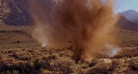 Later on, Burt says that instead of starving, he'd rather go out with a burning fuse and let them take him down with a bomb. Earl then suddenly gets an idea. Attracting one with rocks, they get a monster to come to the surface, they hen throw out a burning bomb and pull it with a string. The monster then eats and seconds later, explodes underground. The other celebrates, even while pieces of monster rain down on them. They go for the last one, which is again the monster who stalled there truck. Val personally throws the bomb and at first it eats it, but then suddenly it spits it back out. When it lands on the other bombs, everyone flees as they all explode. Val, Earl and Rhonda are seen out in open dirt, Val holding the last bomb.