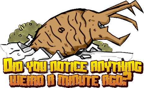 While Nancy looks for Mindy, Melvin scares Earl with his basketball. However, as he wonders through town, his dribbling basketball suddenly gets devoured from below and he screams. The others come out thinking it another prank, but find him hiding up a light pole and suddenly a monster erupts. Melvin runs for a shack, Nester runs for his trailer home and everyone else runs into the store. Inside, they hear the creature slowly move under the floorboards and remain silent. Suddenly, they hear Mindy going through town on her Pogo Stick and see signs of a monster go after her. Val runs and saves her as Nancy joins him. Before he can explain, the Pogo Stick is sucked down and shot back out. Nancy and Mindy then run into there house.