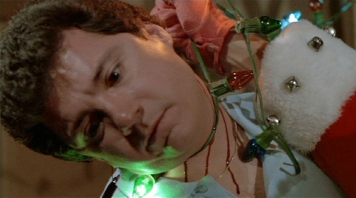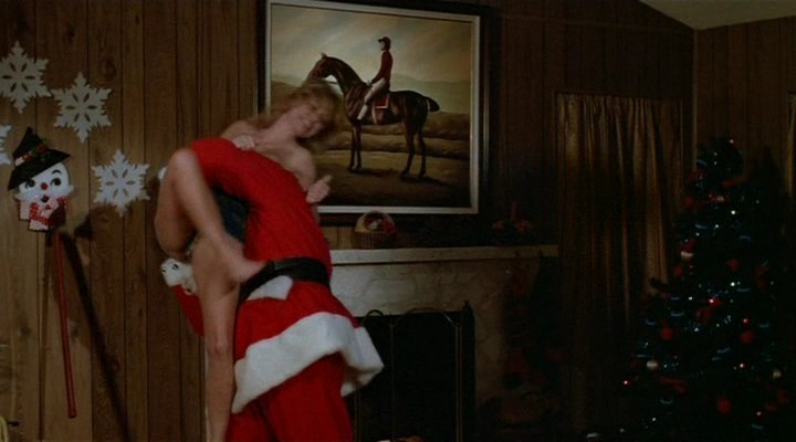 3. Linnea Quigley, topless again, treats us to some festive cheer in the form of a little titty time. A welcome, albeit brief, break from the multiple murders and a reminder to us all that Christmastime is indeed a time of hope and joy.
