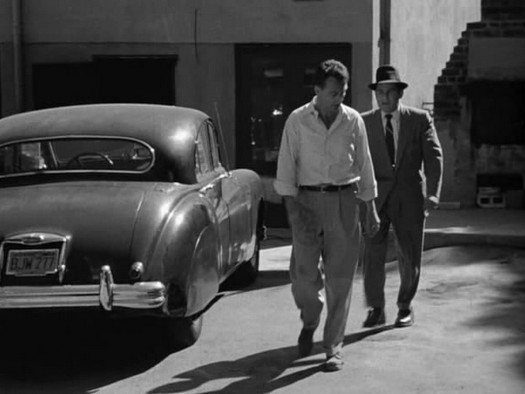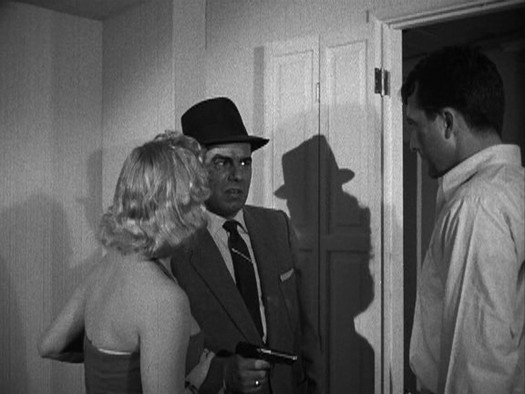 Trudy represents an interesting character study as well. A top-heavy blonde in a plunging neckline of the sort Hollywood was so enamored with during this period, I can't really call her a low-budget Marilyn Monroe. She's more on par with Mamie Van Doren in terms of thespianism, if not bustline. Something of a gangster's moll, she proves herself to be the proverbial "Hooker with a Heart of Gold" in her forgiveness of McKenna for ditching her on the beach and brings him into her apartment to recuperate. In doing so, she demonstrates the only real character development in the film.