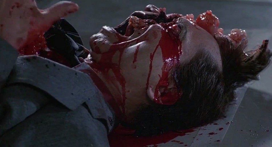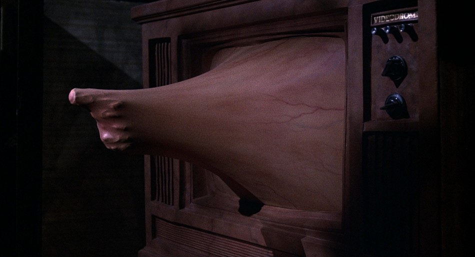 After swapping bodily fluids via needle pricks, Brand shares her desire to be bound, shocked and fucked on Videodrome's smarmy set. As you can imagine, everything digresses from this point, and reality and fiction are blended: hands transform into sinewy guns, chests turn into gapping, vagina-like videocassette slots, and people turn into blubbering piles of torn muscle and broken bone.