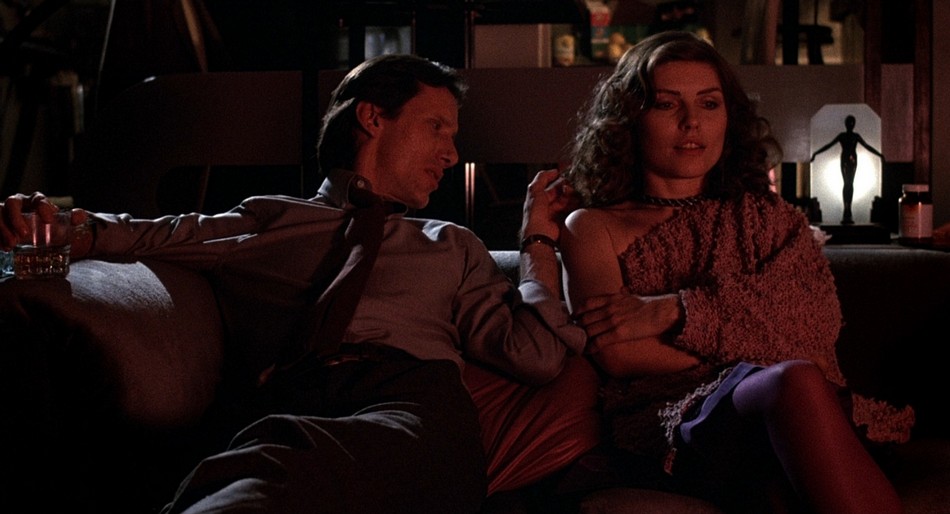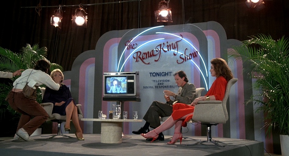 Renn befriends fellow fuck-fiend Nicki Brand (Deborah Harry) after appearing on a talk show with Brian O'Blivion, who specializes in the blending of television and reality. (I bet there's a pop-punk band front man who's cutting his wrists horizontally because he didn't hear that name before calling his alter-persona Craig O'bscurea.)